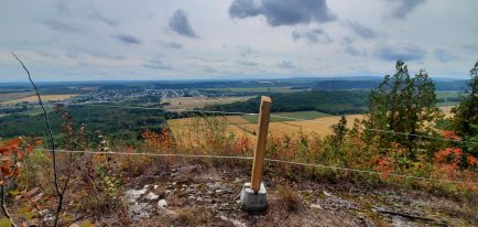 Du haut de la montagne, on aura une vue vers l’est sur le majestueux fleuve St-Laurent, ainsi qu’un vue vers l’ouest qui dévoile les terres de Saint-Fabien. De loin, vous pourrez admirer le magnifique parc national du Bic.